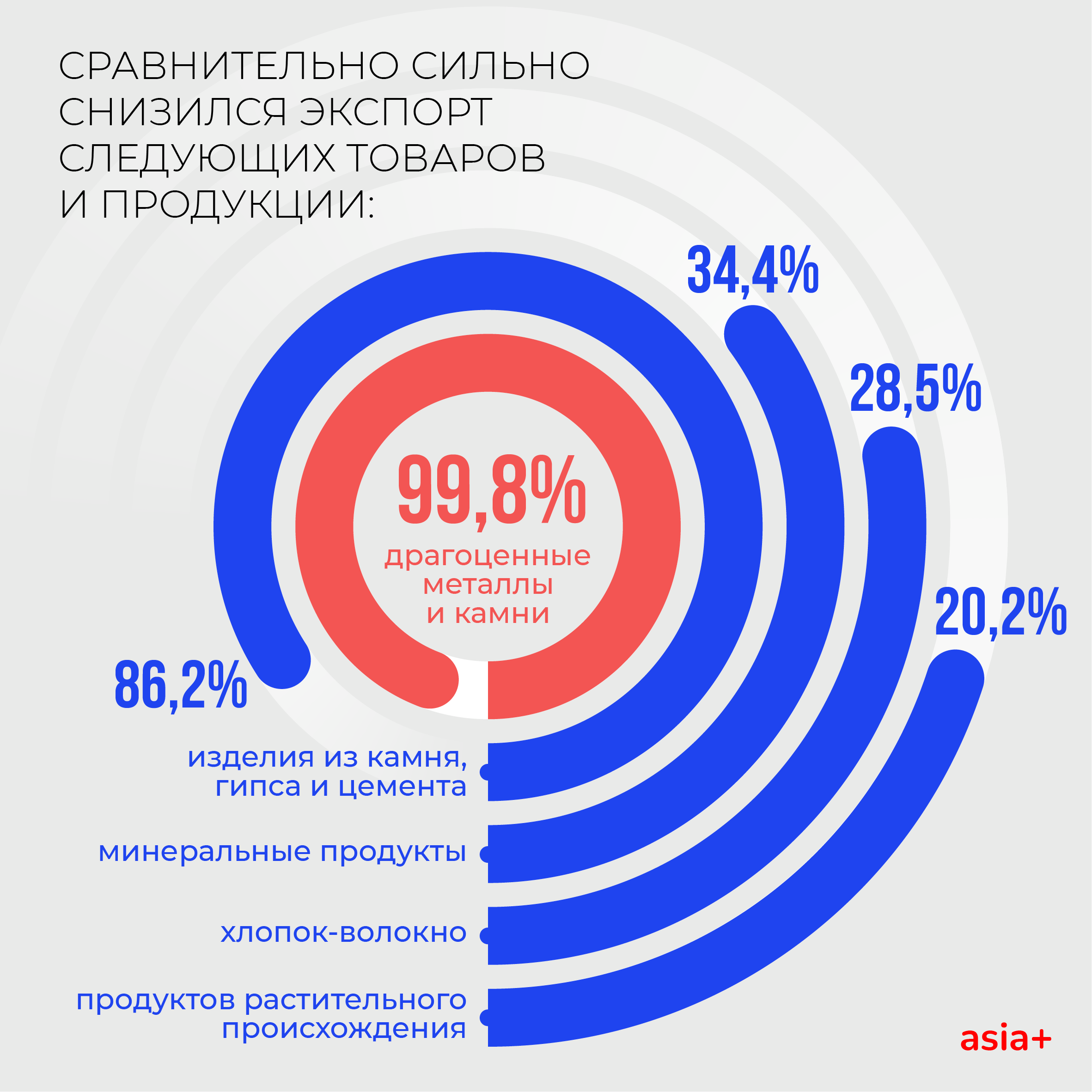 Сравнительно сильно снизился экспорт следующих товаров и продукции: