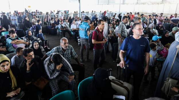 С палестинской стороны у погранперехода собрались толпы людей, желающих покинуть анклав. Корреспондент Би-би-си Рушди Абулуф, находящийся сейчас в Рафахе, передает, что с палестинской стороны погранперехода ждут возможности пройти в Египет около 500 человек. Сотрудники египетской пограничной службы сказали ему, что сперва будут проверены 88 человек с тяжелыми ранениями, после чего они займутся пропуском лиц с двойным гражданством.