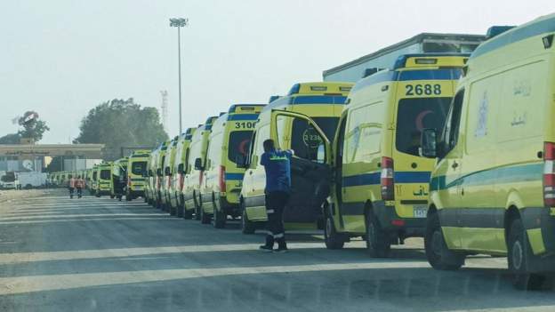 С египетской стороны границы находятся в ожидании 90 машин скорой помощи, чтобы забрать тяжелобольных и раненых, которым также было позволено покинуть Газу.