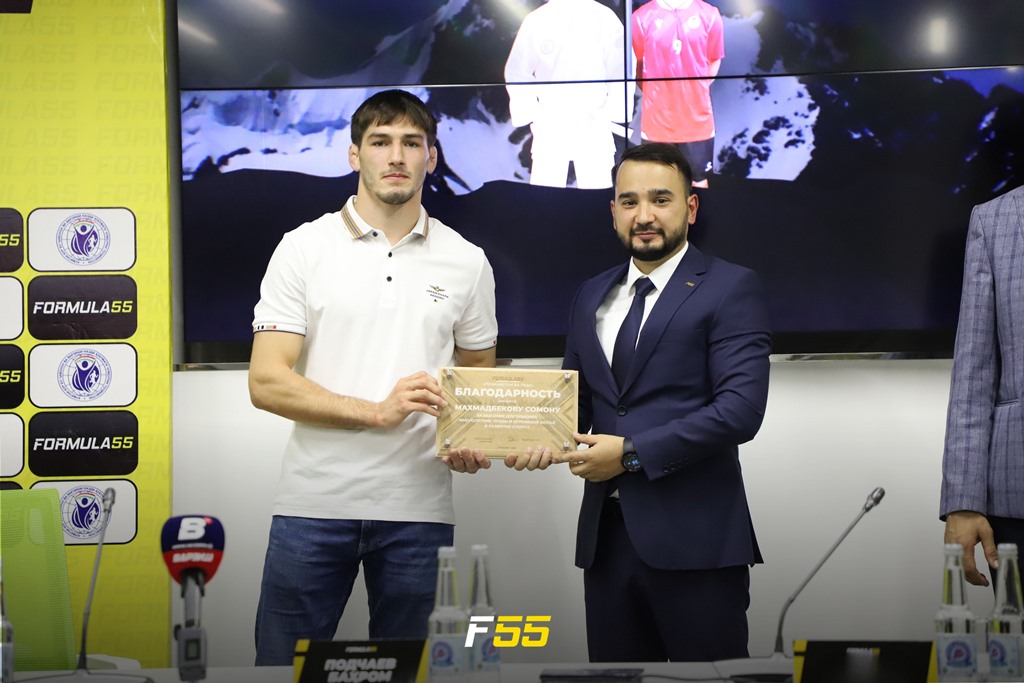 Компания «Formula 55» в рамках своего проекта «Точикистон ба пеш!» наградила очередного спортсмена, многократного чемпиона турниров по дзюдо и золотого медалиста Азиатских игр 2023 в китайском Ханчжоу Сомона Махмадбекова.