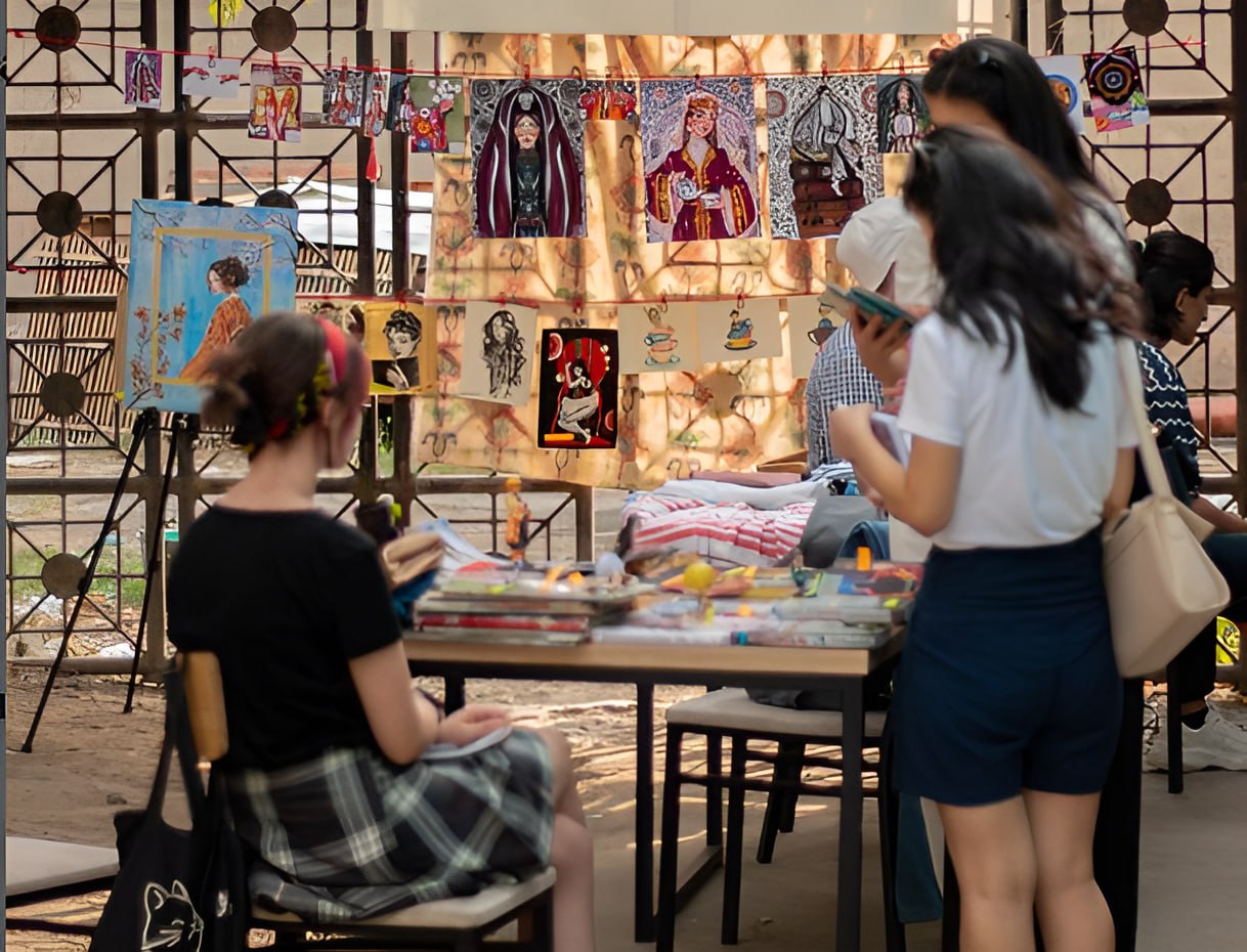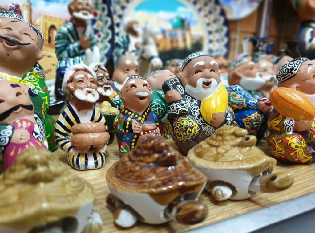 Прилавки встречают посетителей разнообразием украшений, которые искрятся на витринах. Разноцветные тюбетейки, изящные сумки и тарелки, расписанные в технике кундаль, привлекают внимание своей красотой и неповторимостью.