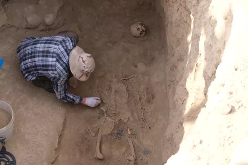 Захоронение обнаружили под насыпью кургана, останки хранились в каменном ящике. Исследования показали, что погребение было сделано в IX–VI веках до н.э.