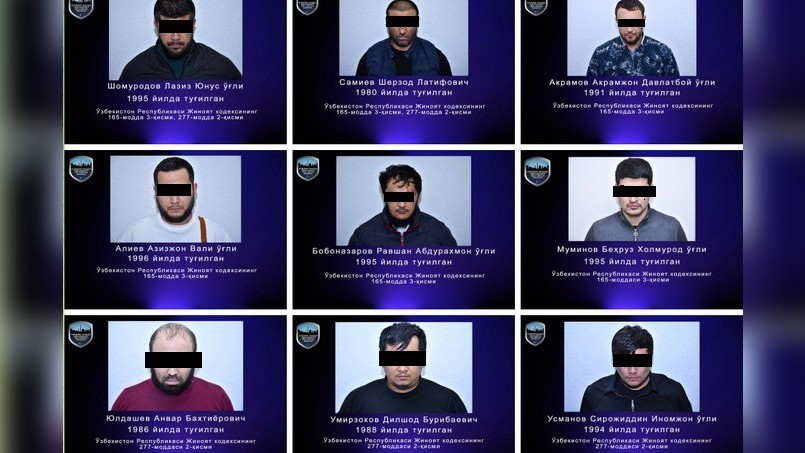 Сообщается, что они привлечены в качестве подозреваемых в рамках уголовного дела по части 3 статьи 165 Уголовного кодекса Узбекистана (вымогательство в особо крупном размере). Также в списке лица, привлеченные к ответственности по части 2 статьи 277 (хулиганство, совершенное группой лиц).