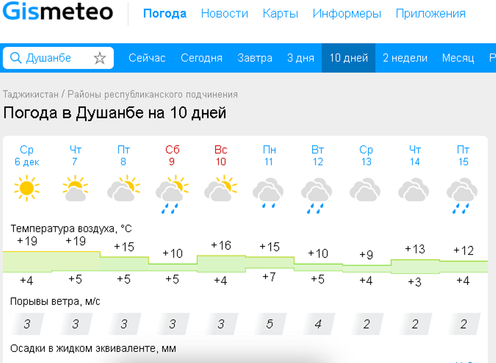 Данные gismeteo.ru тоже подтверждают, что резкого похолодания в Душанбе не будет: показатели этого метеорологического ресурса показывают температуру воздуха днем в среднем до 15 градусов тепла в эти дни.