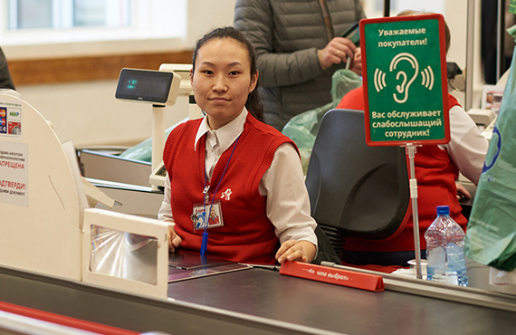 Примеров достойного трудоустройства слабослышащих не так много, но они есть. Так, в сети магазинов французского ритейлера «Ашан» по всей России работает около тысячи слабослышащих сотрудников. По словам руководства, это одни из самых добросовестных работников. Особо лояльные покупатели намеренно идут к те кассы, где обслуживают клиентов улыбчивые девушки с проблемами слуха.