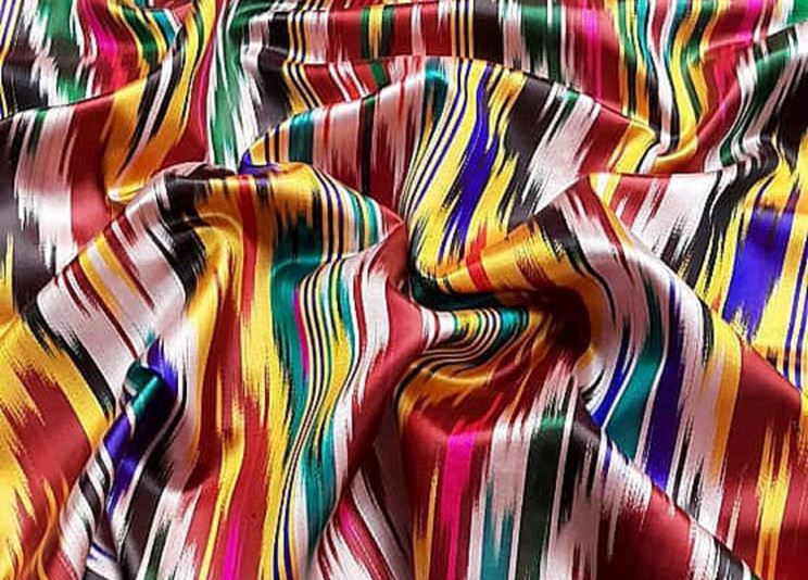 Таким образом, когда ткань выткана, на ней появляются своеобразные, только ей свойственные узоры, состоящие из радужно переливающихся цветных разводов (хан-атлас) или чередующихся цветных полос (бекасам).
