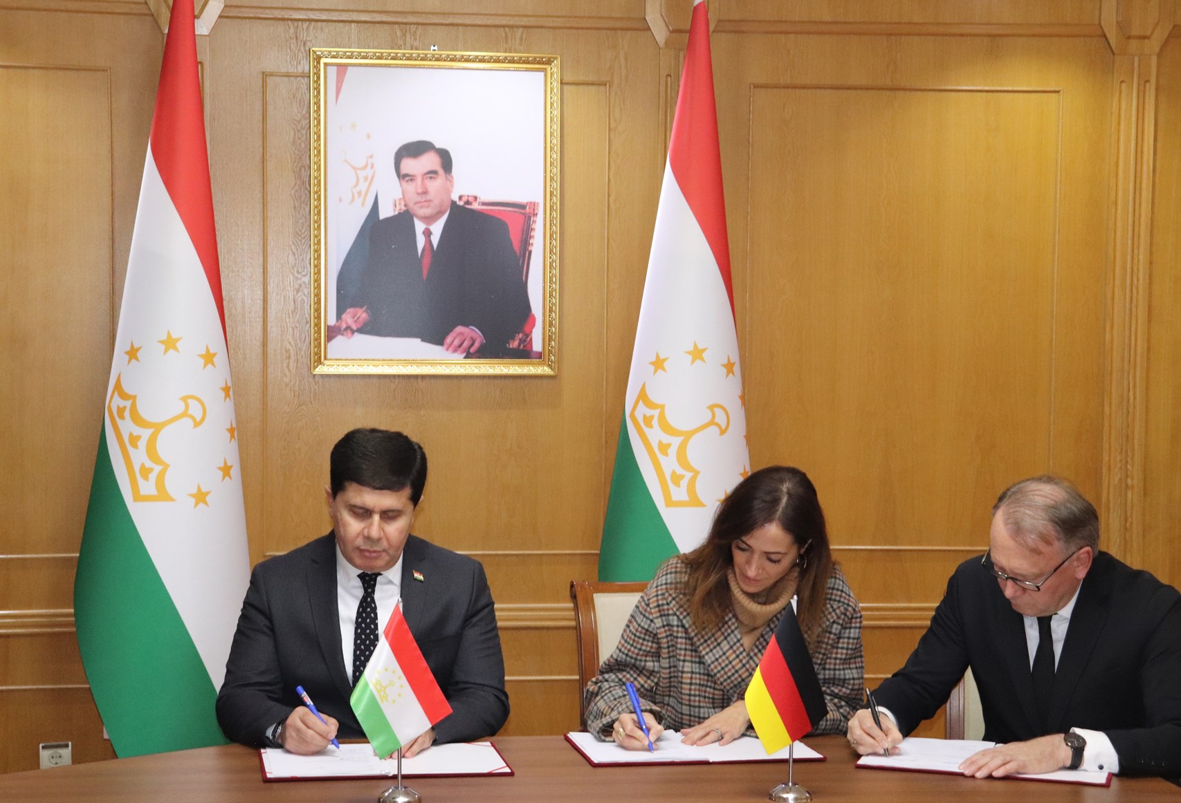 Соглашение о дополнительном финансировании подписали министр экономического развития и торговли Таджикистана Завки Завкизода, директор Германского банка развития (KfW) в регионе Восточная Европа, Кавказ и Центральная Азия Вероника Гарсиа дель Арко, региональный директор KfW по Центральной Азии Андреас Шнайдер и генеральный директор компании «Памир Энерджи» Амрихон Раимов 12 декабря в Душанбе.