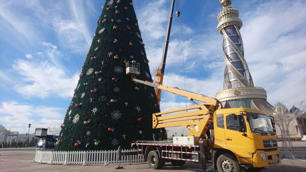 Елка уже украшена игрушками с электрической подсветкой и елочными игрушками. Также для развлечения жителей и гостей Душанбе вокруг нее установлены различные элементы электроподсветки: символические ворота городка, фонтаны с надписью «2024», арки различных видов, фигурки, игрушки больших размеров, ёлочки и различные деревья, снеговики, а также домик Деда Мороза.