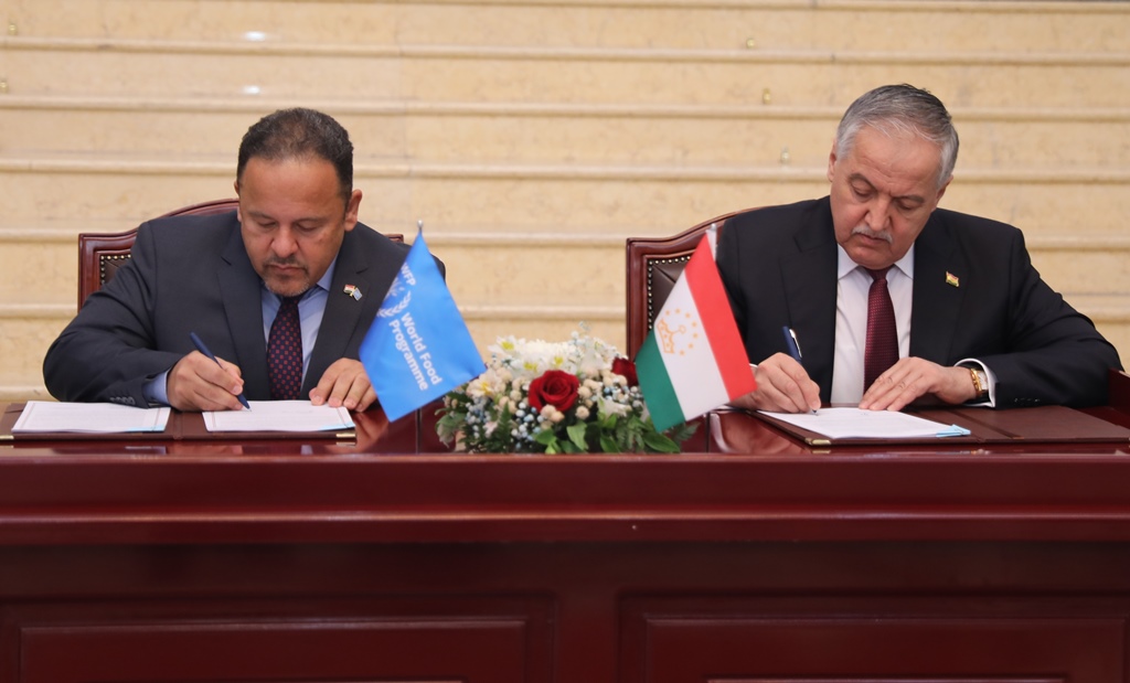 Меморандум подписали представитель и страновой директор ВПП в Таджикистане Адхам Мусаллам и министр иностранных дел Таджикистана Сироджиддин Мухриддин.