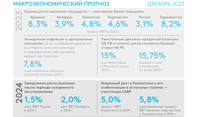 Об этом говорится в «Макроэкономическом прогнозе ЕАБР 2024–2026», презентованном накануне, 14 декабря, в Алматы.