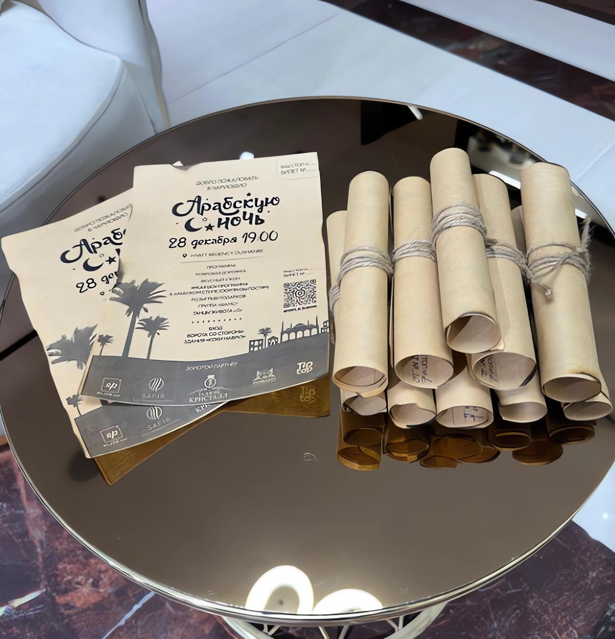 В рамках программы гостей ждет вкусный ужин, подарки, выступление группы «Шамс», танцы, fire-шоу, ковровая дорожка, участие в розыгрыше призов, тематические фотозоны и неповторимая атмосфера Востока. «Арабская ночь» представляет собой возможность завершить год в таинственно красивой обстановке.