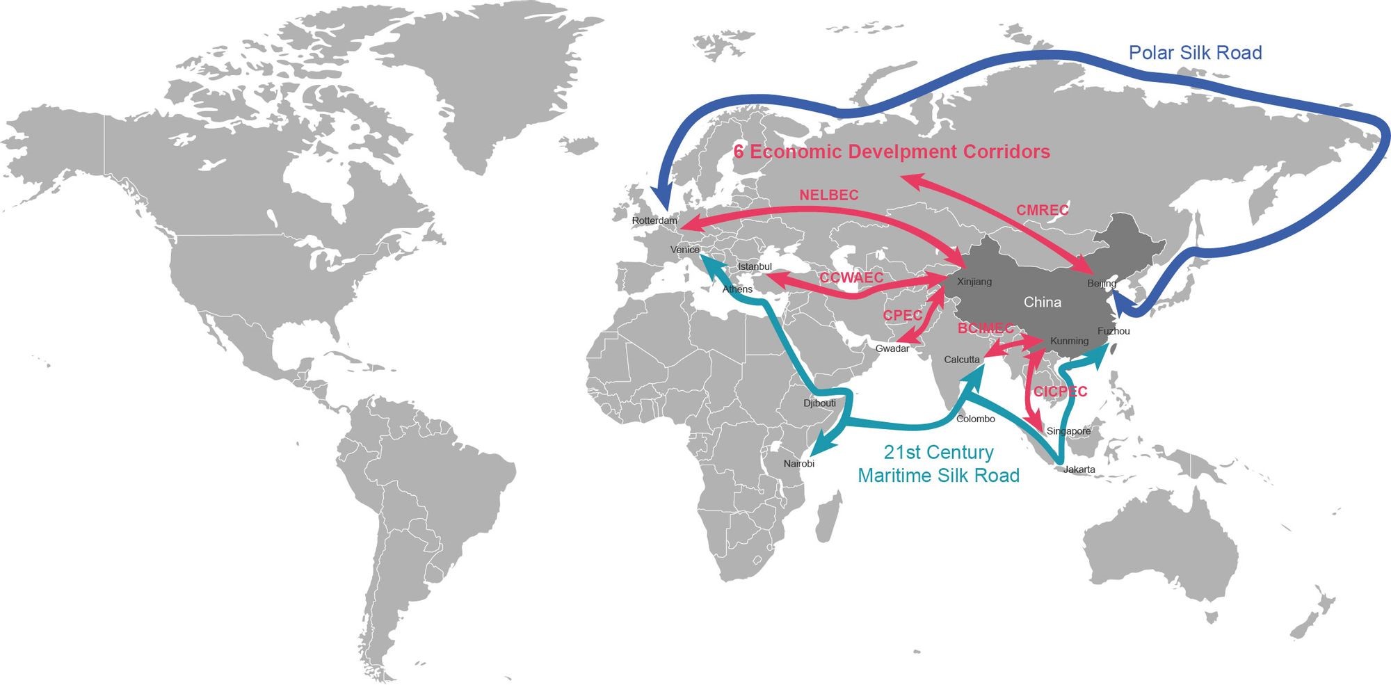 Утверждается, что BRI направлен на установление связей между различными регионами посредством строительства инфраструктуры. Инфраструктура, в свою очередь, строится за счет дешевых кредитов, предоставляемых Китаем странам-участницам.