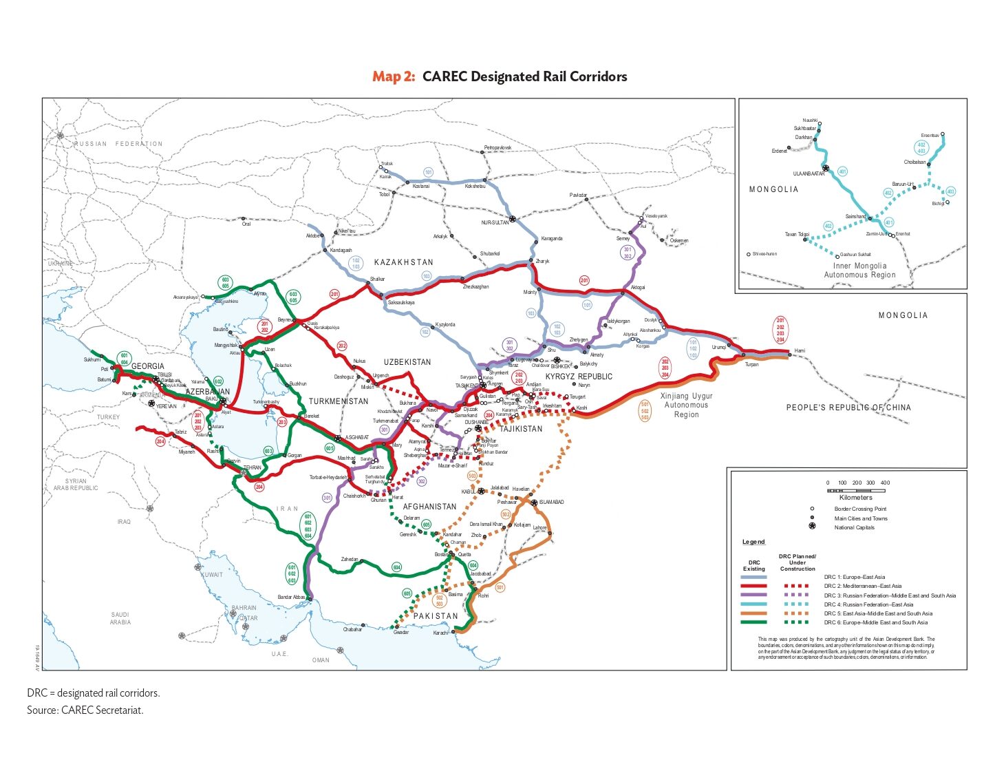 Вместе с тем, оба коридора входят в транспортную сеть программы Центральноазиатского Регионального Экономического Сотрудничества (ЦАРЭК), созданной незадолго после TRACECA и поддерживаемой Азиатским Банком Развития.