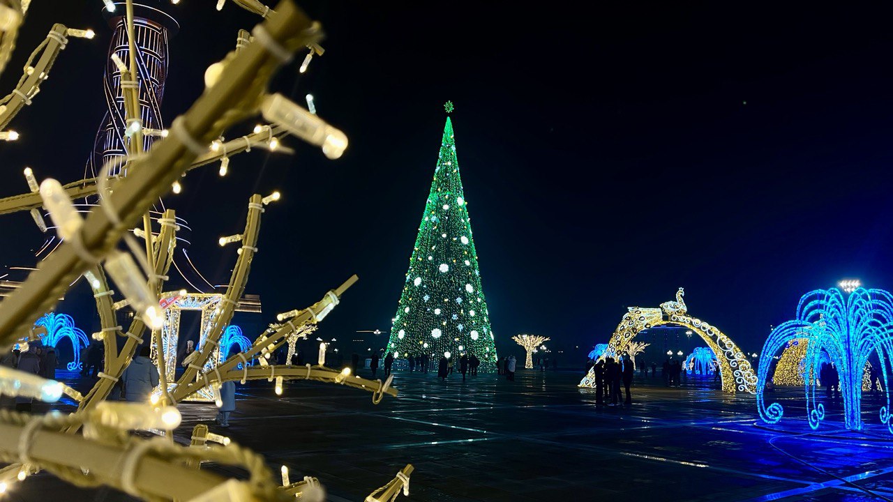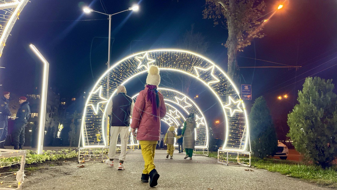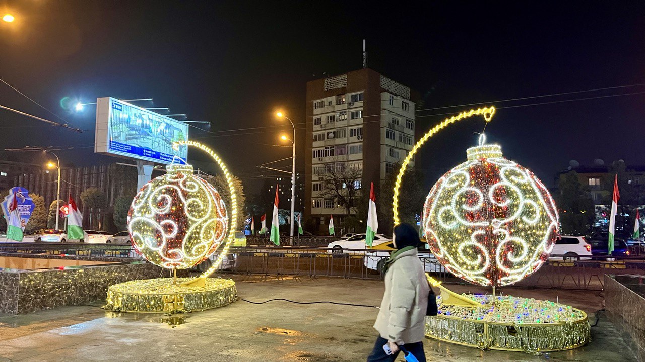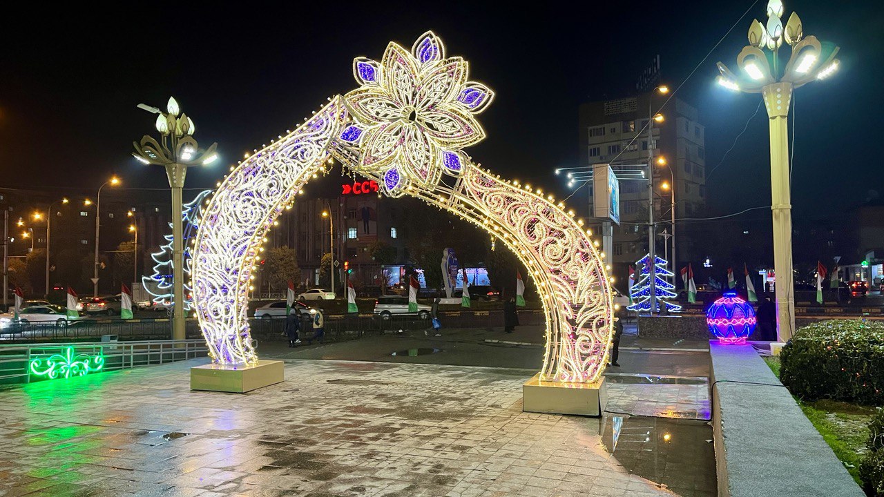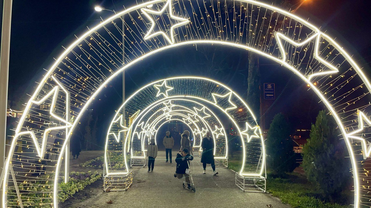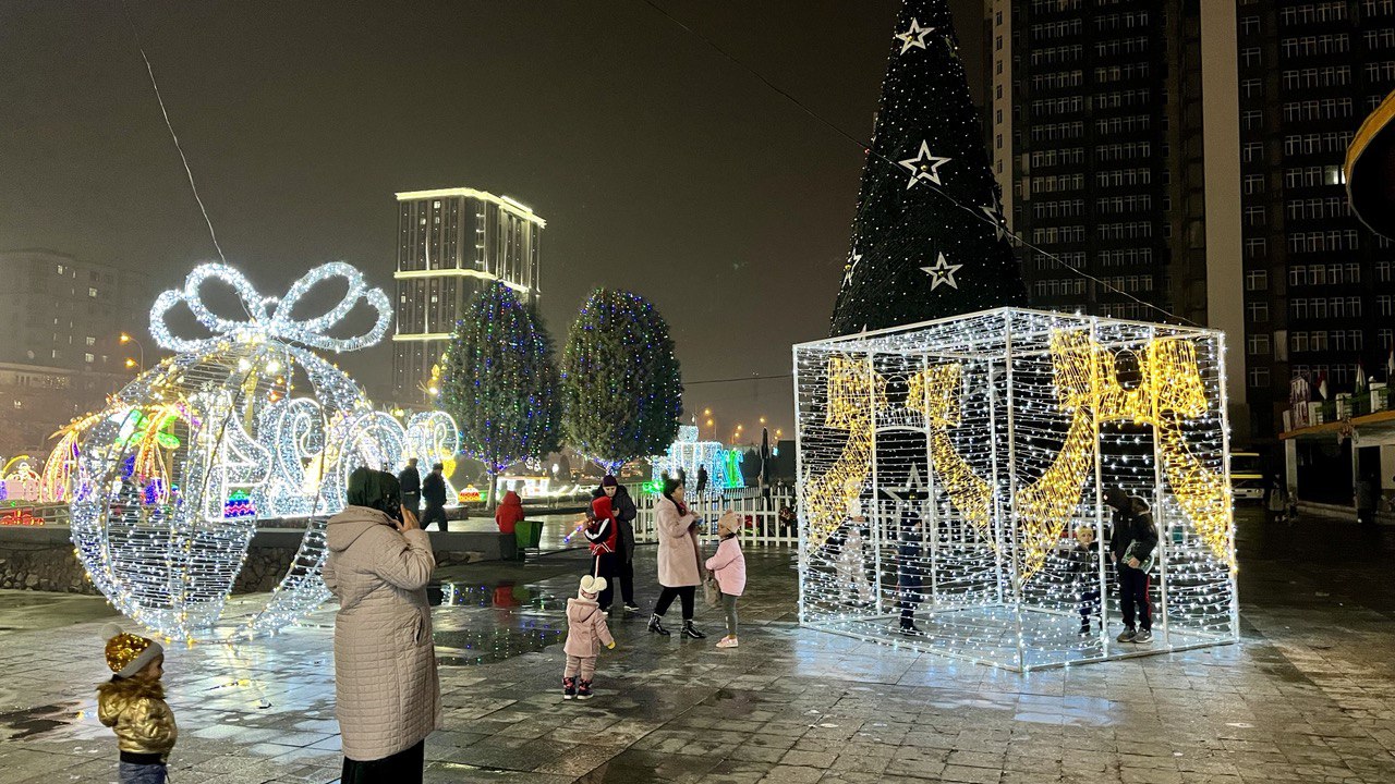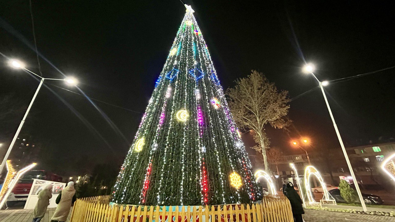 Мы собрали фотографии новогодних ёлок, которые установлены в трех районах столицы, а также в Худжанде.