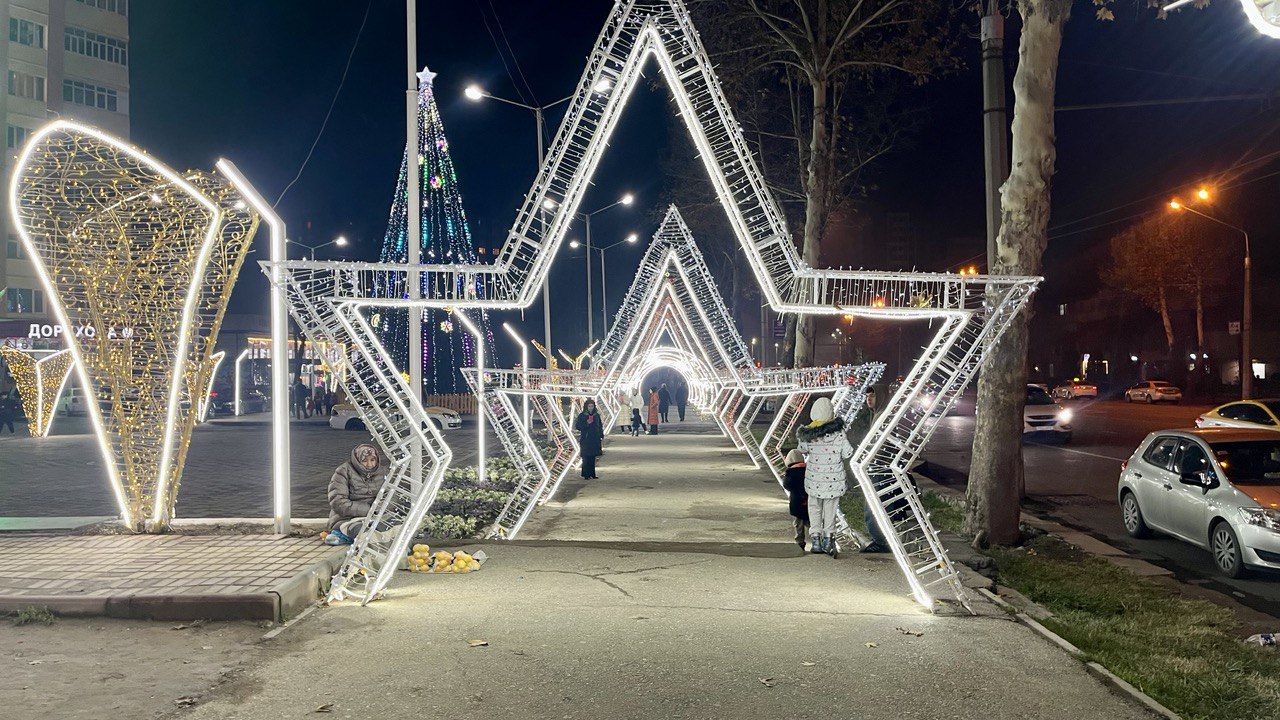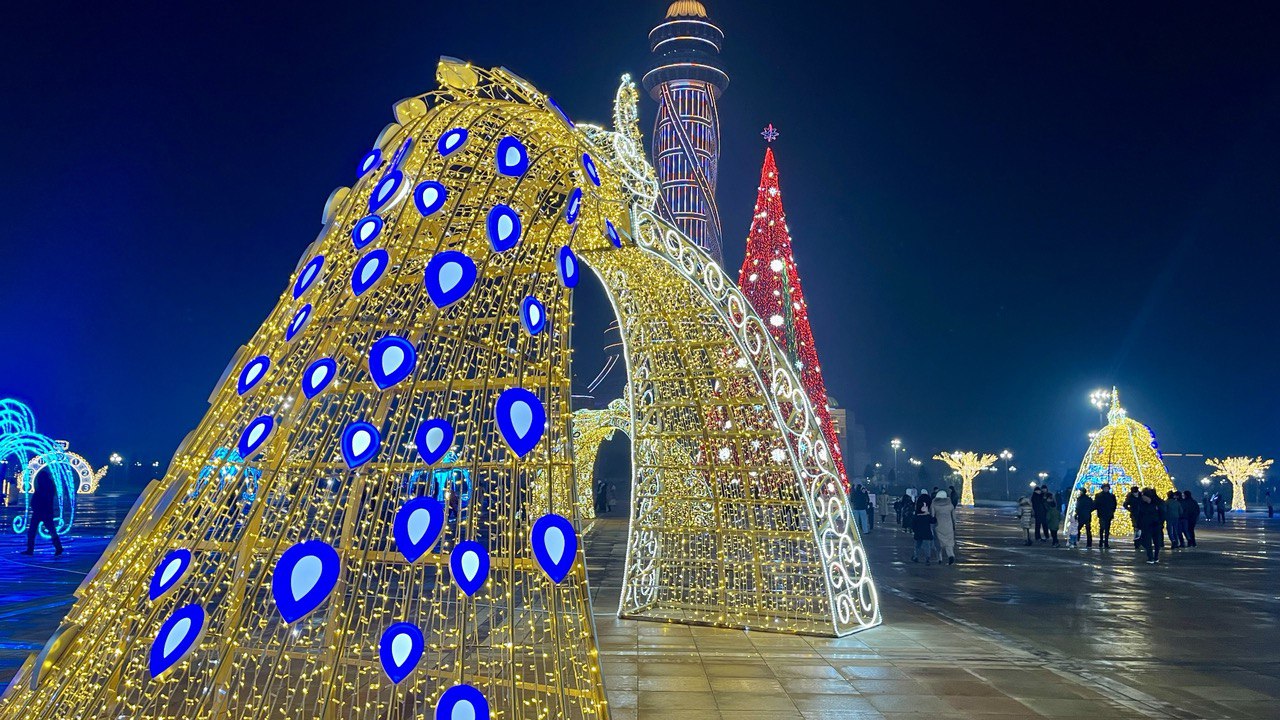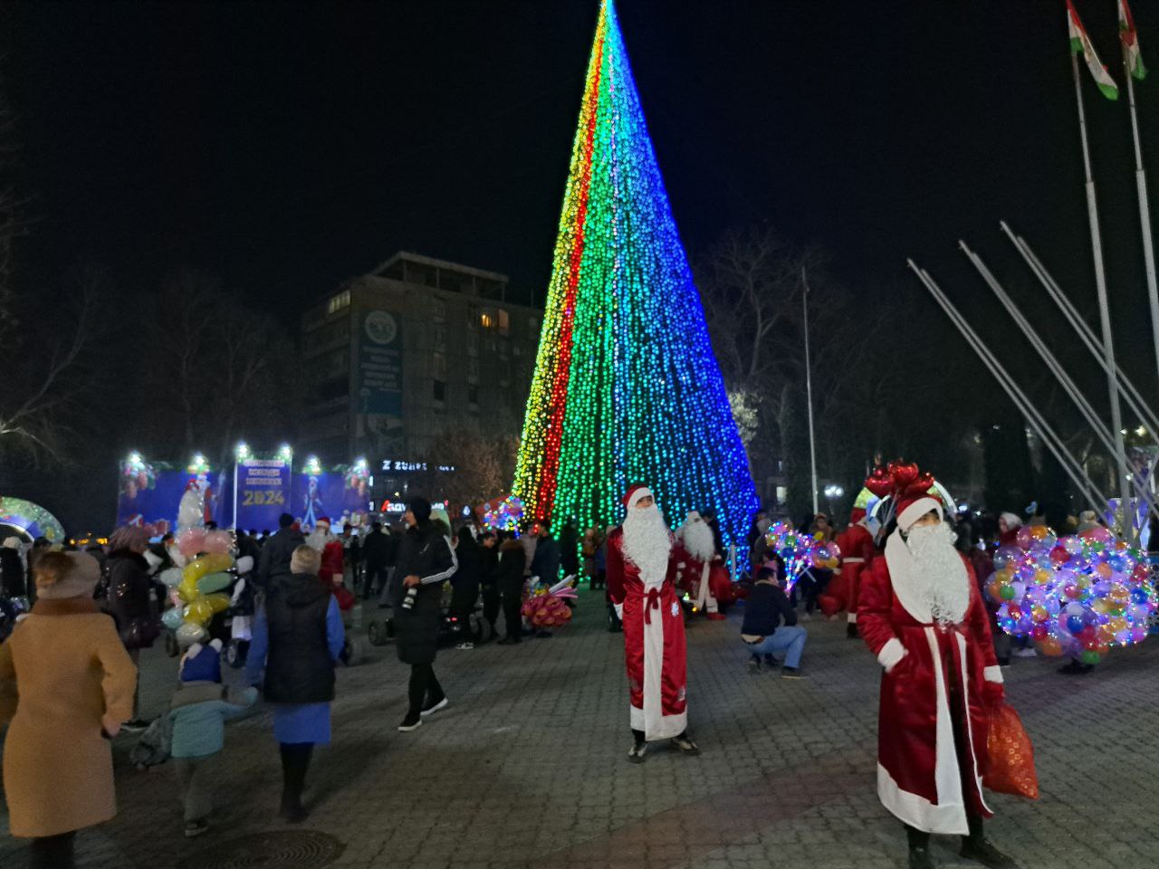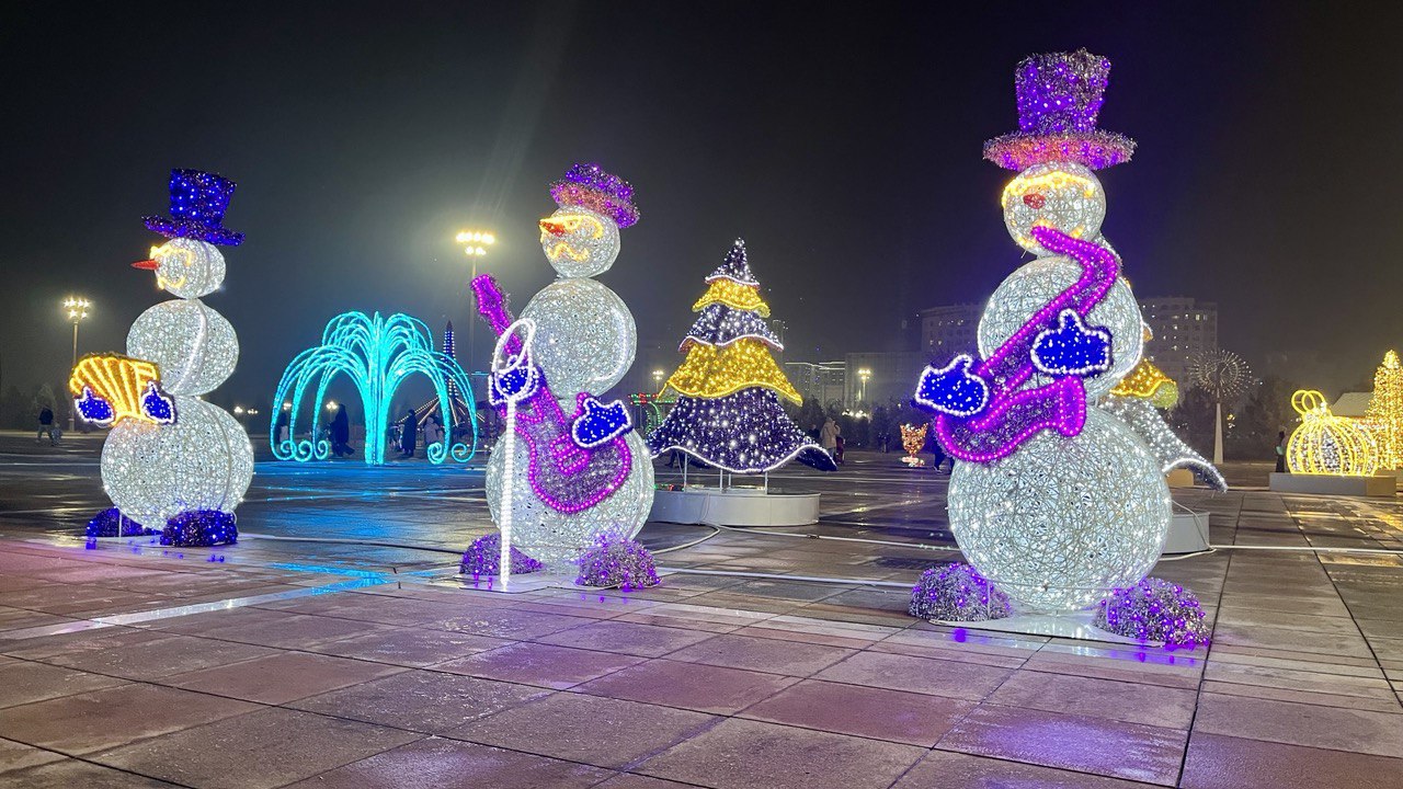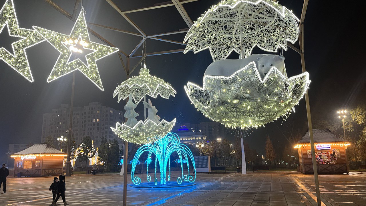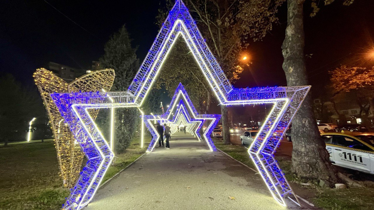 Мы собрали фотографии новогодних ёлок, которые установлены в трех районах столицы, а также в Худжанде.