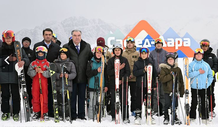 На верхней станции туристического лыжного комплекса «Сафеддара» Эмомали Рахмон перерезал символическую ленту и открыл новую лыжную трассу «Сомони». Длина новой лыжной трассы 7,2 км.