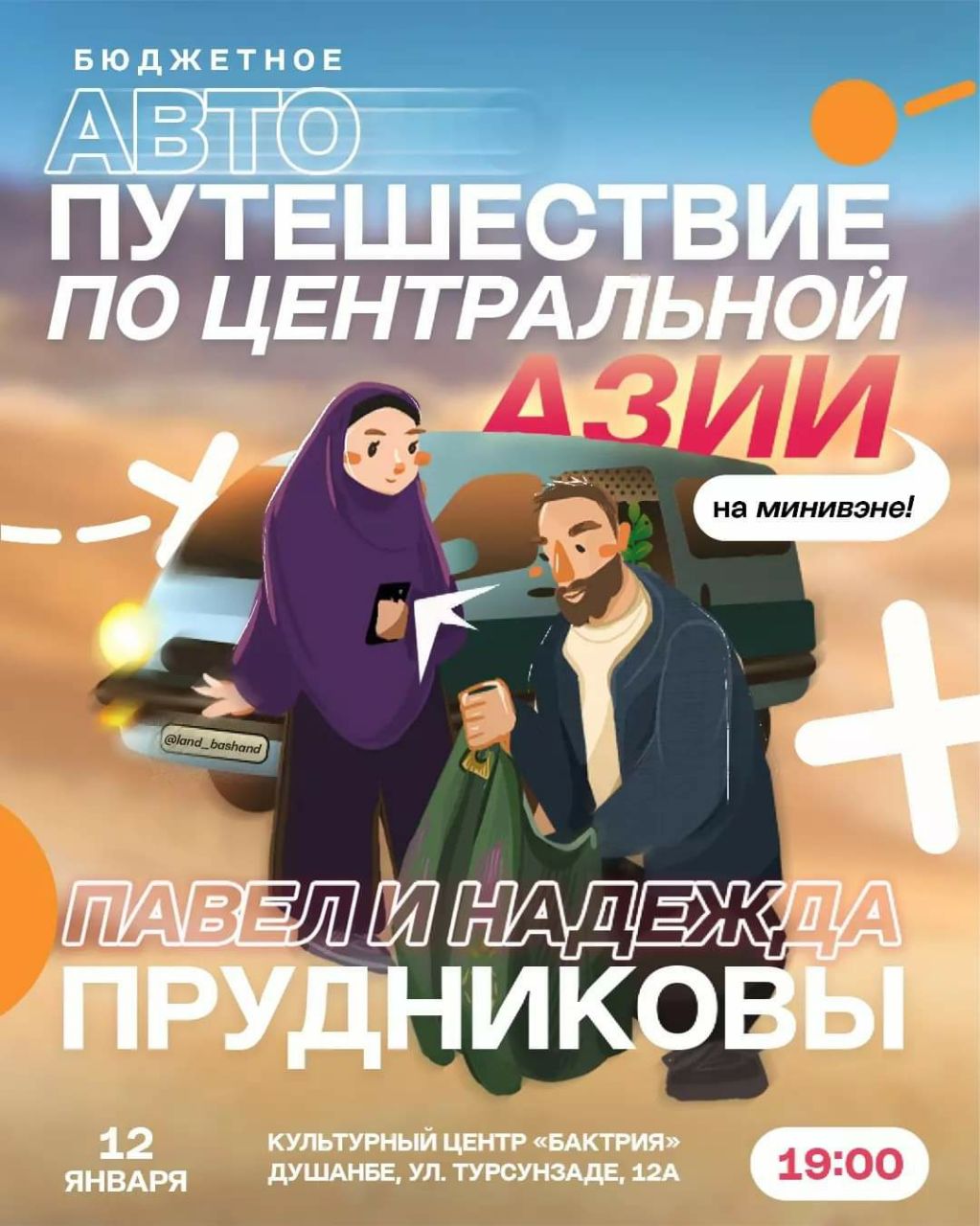 12 января в 19:00 пройдёт travel-meeting «Бюджетное автопутешествие на минивэне по Центральной Азии» c Павлом и Надеждой Прудниковыми, которые поделятся личным опытом и расскажут увлекательные истории из своей жизни на колёсах. Встреча будет особенно полезна тем, кто хочет отправиться в путешествие на своей машине, но пока не решается.