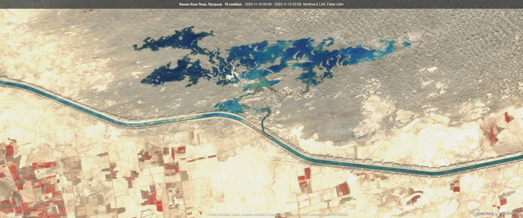 Спустя два месяца после запуска первой очереди канала Кош-Тепа экологи коалиции «Реки без границ» сообщили, что на только что введенном в эксплуатацию участке произошла авария. Анализируя спутниковые снимки, ученые сделали вывод, что стенки гидротехнического сооружения, вероятно, не выдержали давления воды, и на правом берегу канала образовался разлив длиной девять километров.