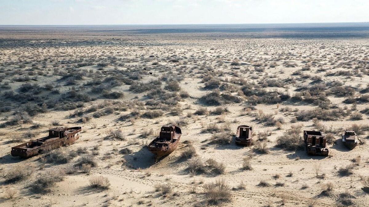 Аральское море 50 лет назад имело более 60 тыс. кв. километров площади, сейчас оно в 10 раз меньше.