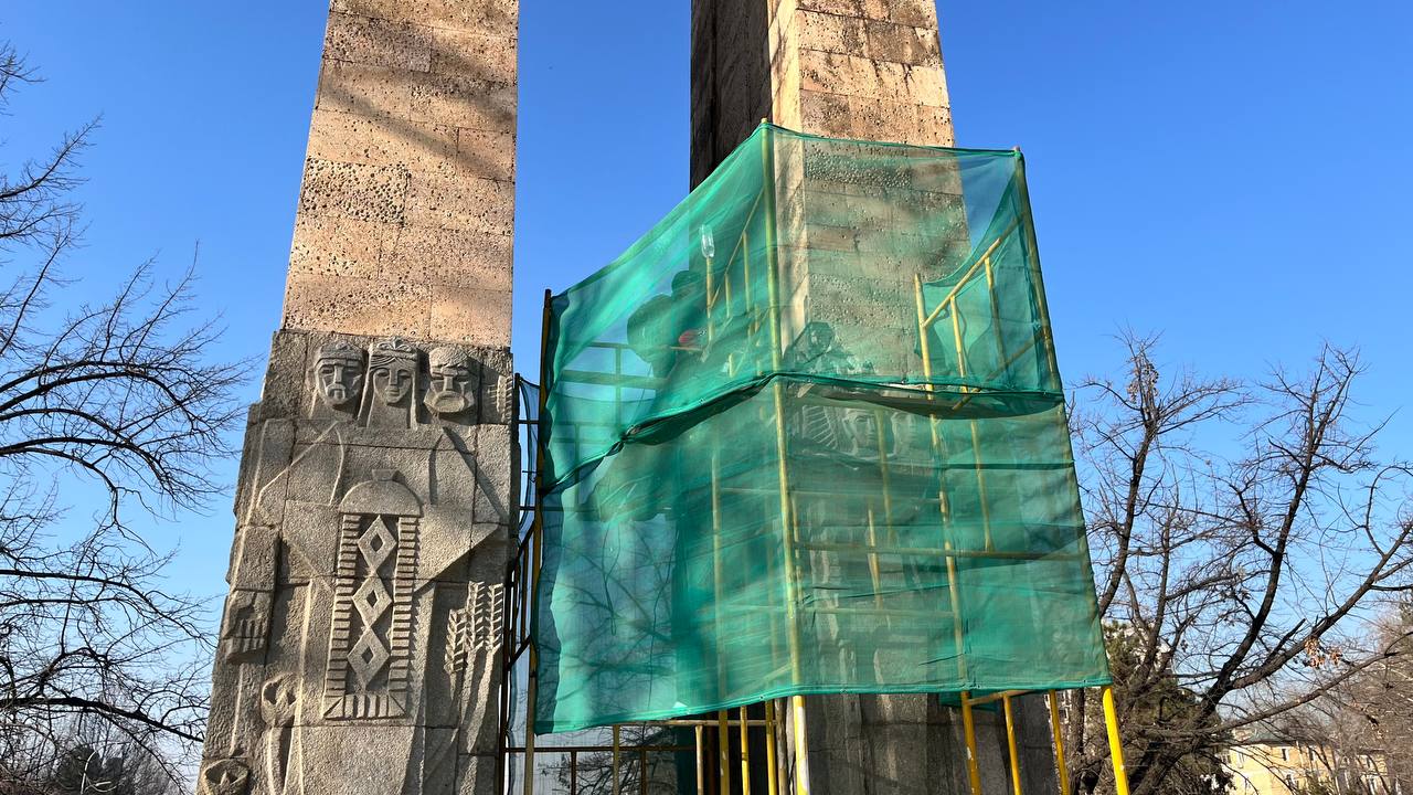 В Душанбе начался демонтаж знаменитой Площади Победы, со стеллой и танком.
