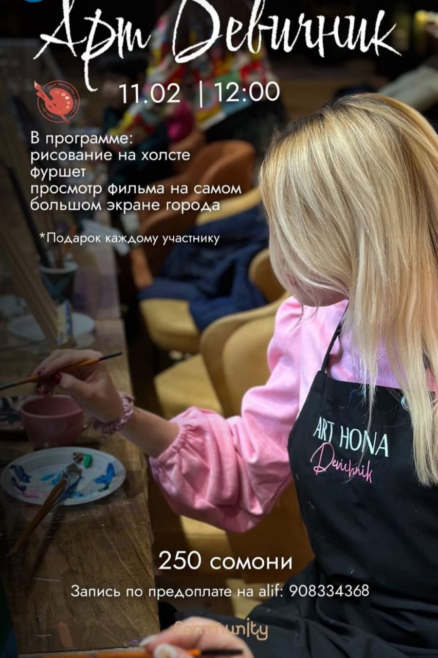 В ресторане Community 11 февраля в 12:00 пройдёт увлекательное мероприятие только для девушек под кодовым названием «Арт Девичник». В программе: рисование на холсте, просмотр фильма на большом экране и фуршет.