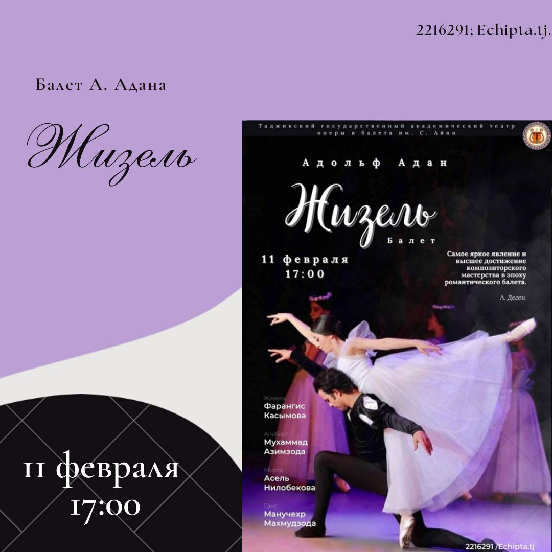 В Государственном академическом театре оперы и балета им. С. Айни 11 февраля в 17:00 состоится показ легендарного балета А. Адана «Жизель».