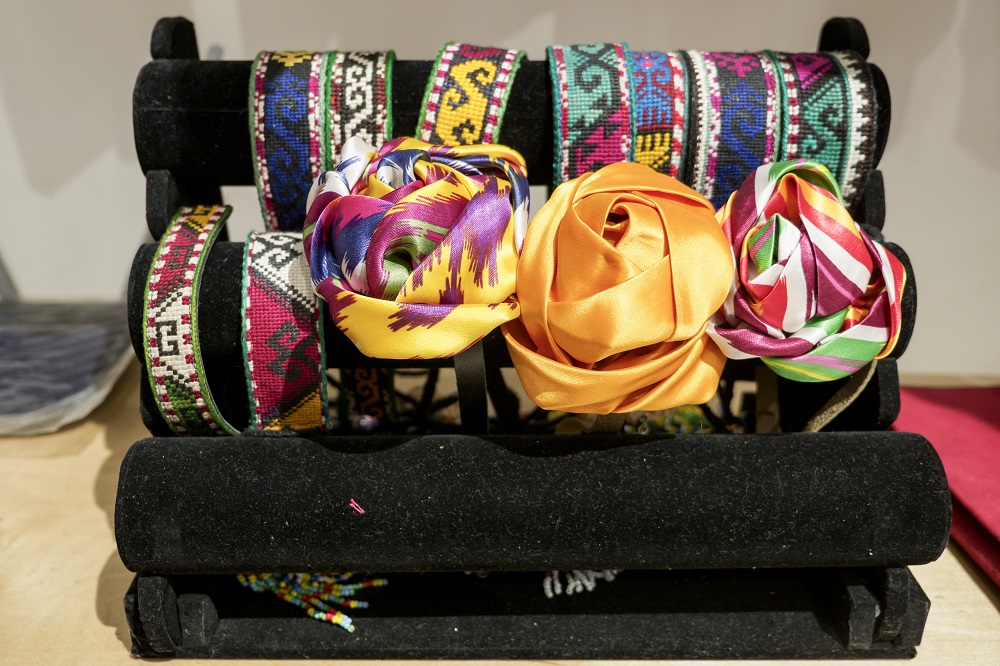 Здесь можно найти современную одежду с узорами иката, сюзане, адраса и тюбетейки.