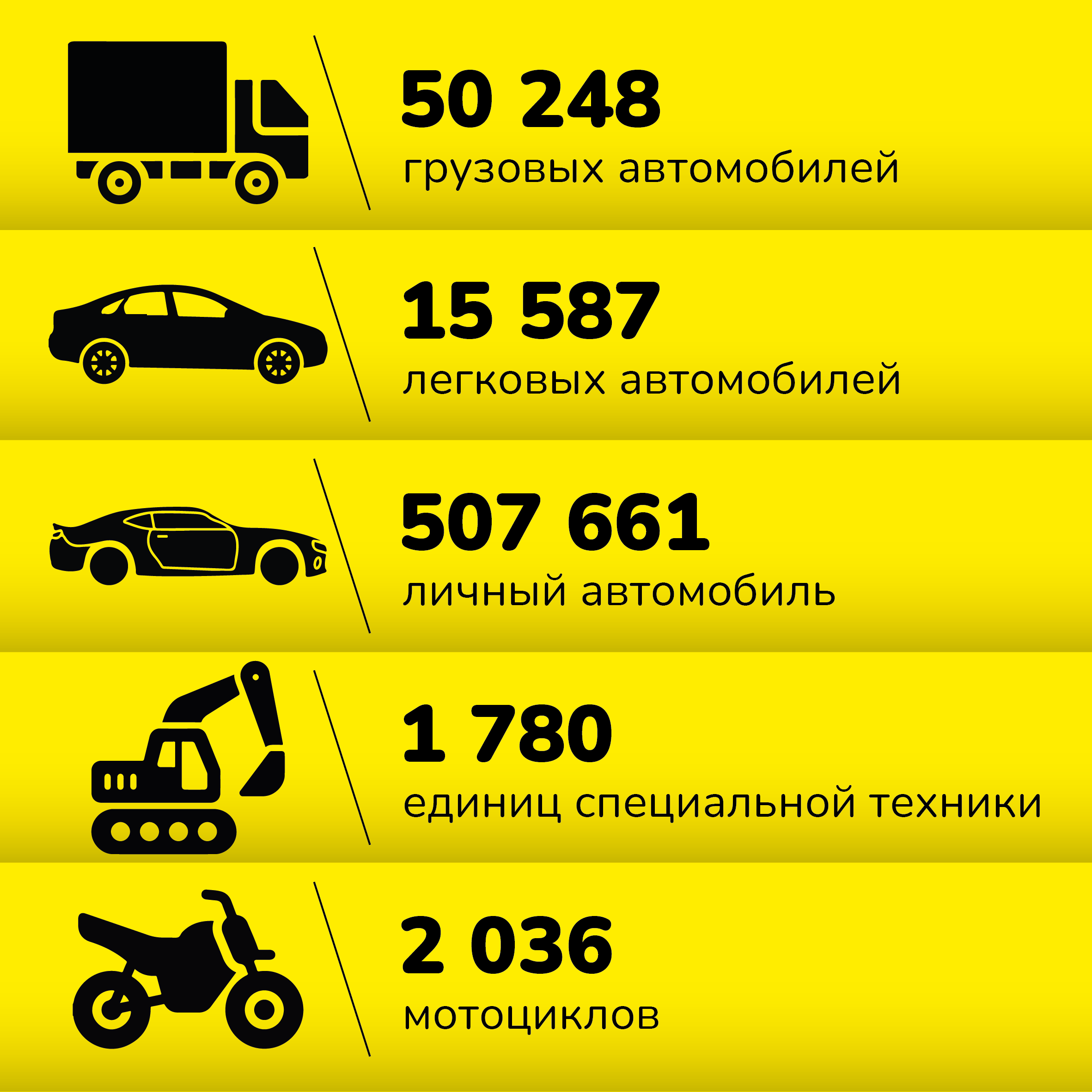 Согласно данным Минтранса, в апреле 2023 года в Таджикистане было зарегистрировано более 577 тысяч транспортных средств, в том числе: