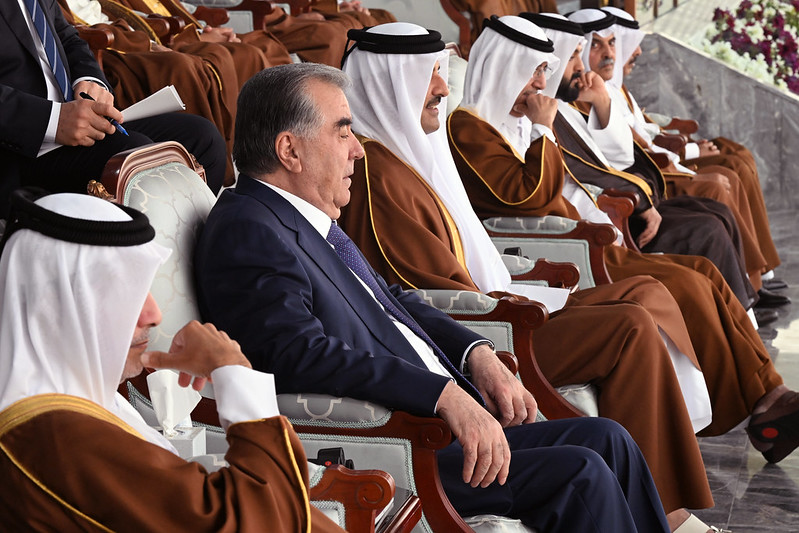 Президент Таджикистана Эмомали Рахмон по приглашению эмира Катара Шейха Тамима ибн Хамада Аль-Тани присутствовал на просмотре финального турнира Фестиваля конных скачек.
