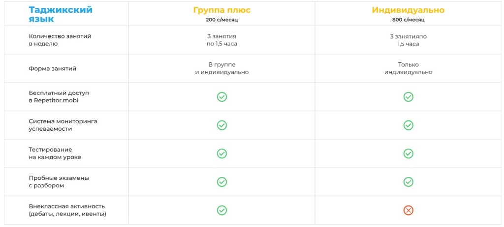 Стоимость: групповые занятия – 200 сомони в месяц, индивидуальные – 800 сомони. На каждом уроке проводится тестирование.