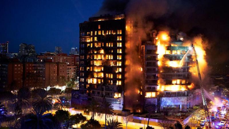 Как передает Би-би-си, пожар охватил 14-этажный дом в районе Кампанар и перекинулся на соседнее здание.