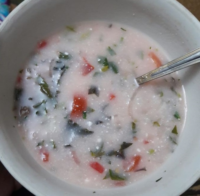 Рисовый бульон сдобряется мятой, ботвой свеклы, помидорами и зеленью кинзы. В легкий и ароматный суп перед подачей добавляют чакку, что придает ему освежающую кислинку.
