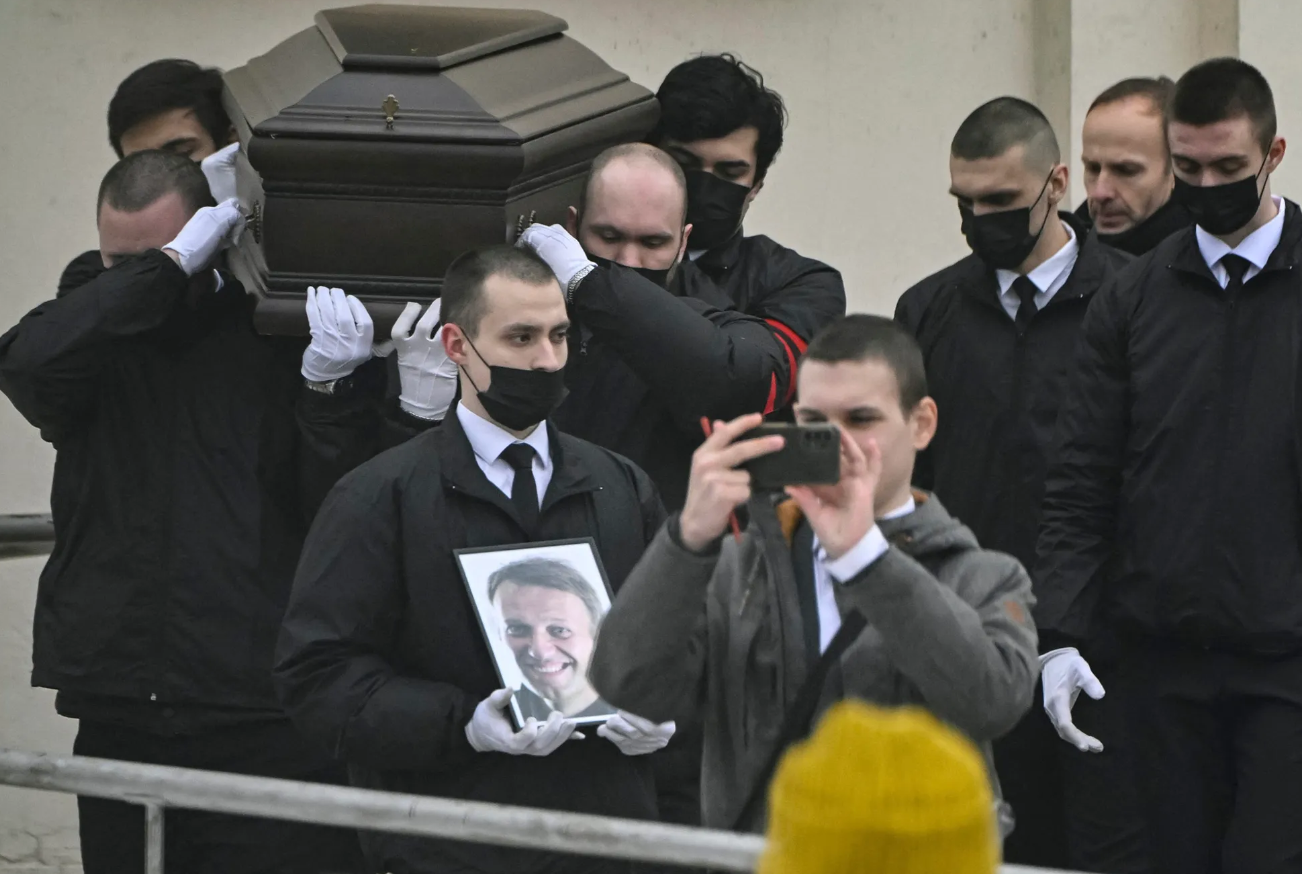 С утра 1 марта у храма собирались люди, которые хотели проститься с Навальным. Очередь к храму растянулась на несколько сотен метров. Когда к церкви привезли гроб с телом политика, люди начали скандировать «Навальный!» и «Не простим!».