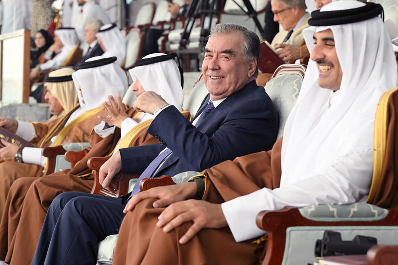 Эмомали Рахмон по приглашению эмира Катара Шейха Тамима ибн Хамада Аль-Тани присутствовал на просмотре финального турнира Фестиваля конных скачек.