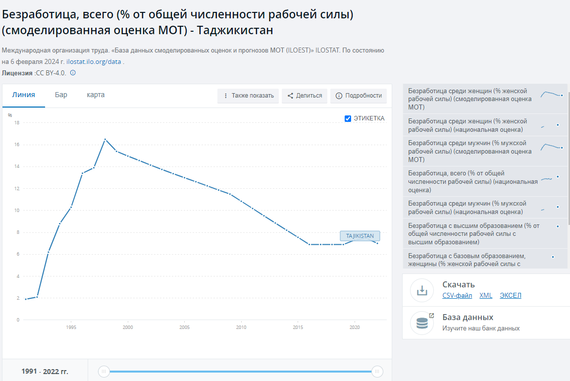 На фоне стабильно высокой трудовой миграции в Россию откровенно неправдоподобны данные по динамике безработицы в Таджикистане.