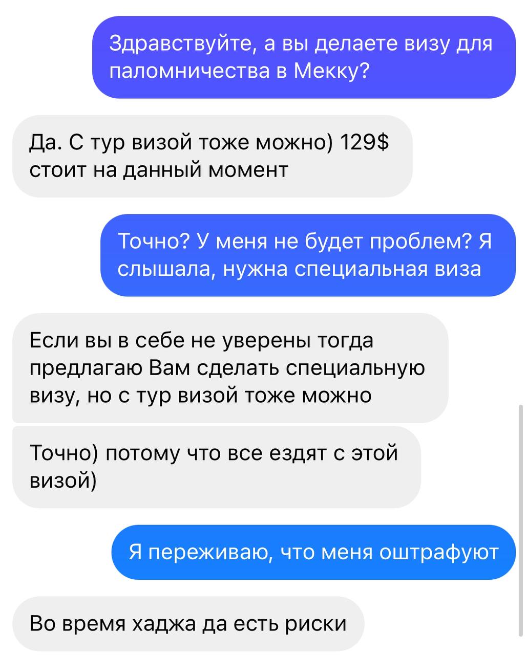 Нет! Туристическая виза недействительна для паломничества. Учтите, что туристические компании будут вам активно её предлагать, уверяя, что «так посещают все». Действительно, шанс не попасться есть, но помните, что если вам не повезёт, вы окажетесь в тюрьме.