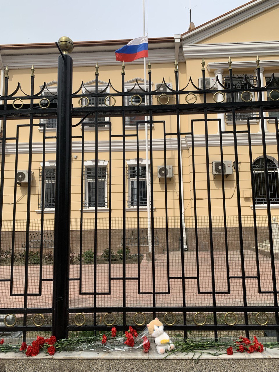 «К посольству России в Таджикистане в Душанбе приносят цветы в знак скорби о жертвах чудовищного теракта. Искренне признательны всем, кто не остался равнодушным к этой ужасной трагедии и разделяет боль с народом России», — сообщило в своем телеграмм канале российское диппредставительство.