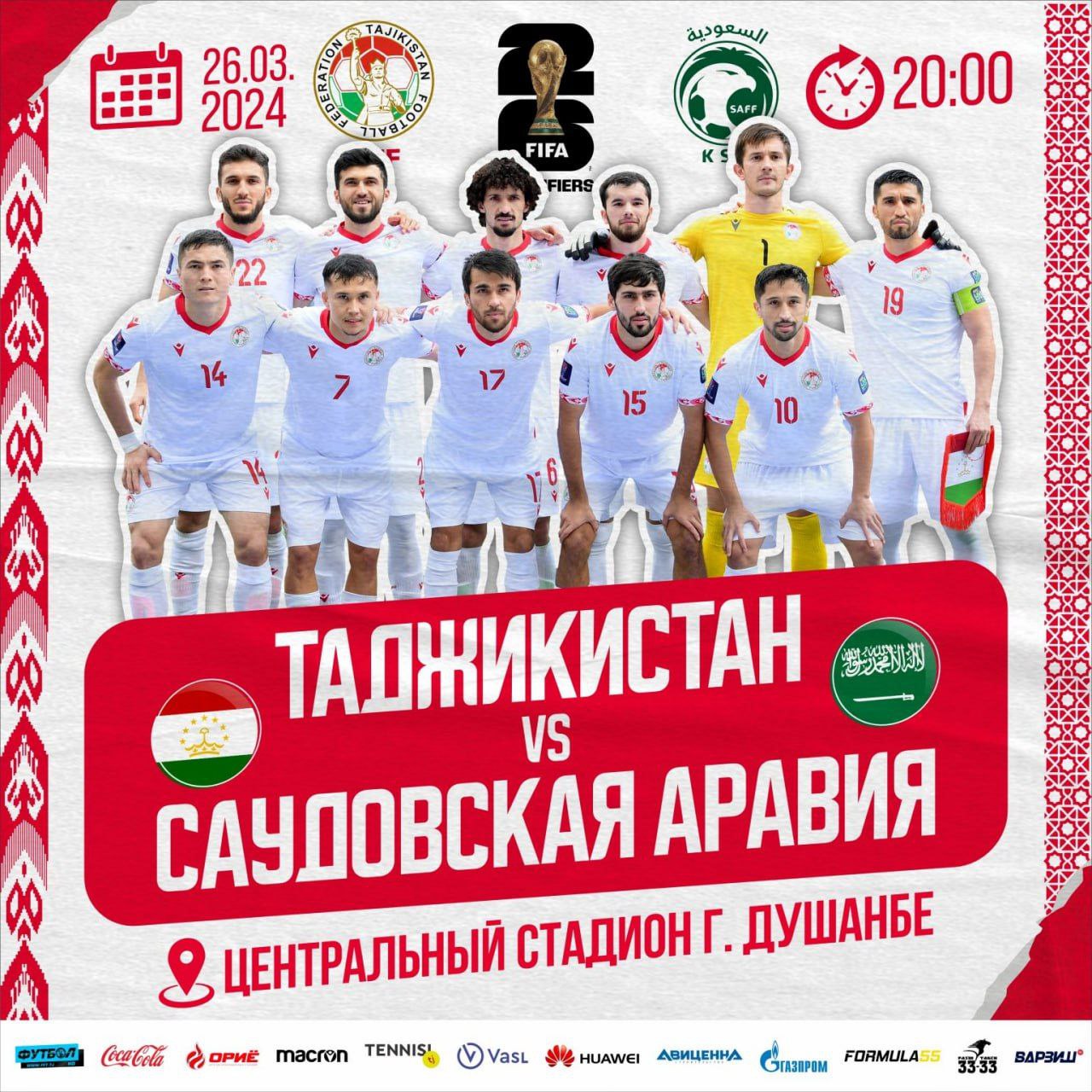 Сегодня сборная Таджикистана проведет четвёртый матч второго раунда отборочного турнира ЧМ-2026 против сборной Саудовской Аравии.