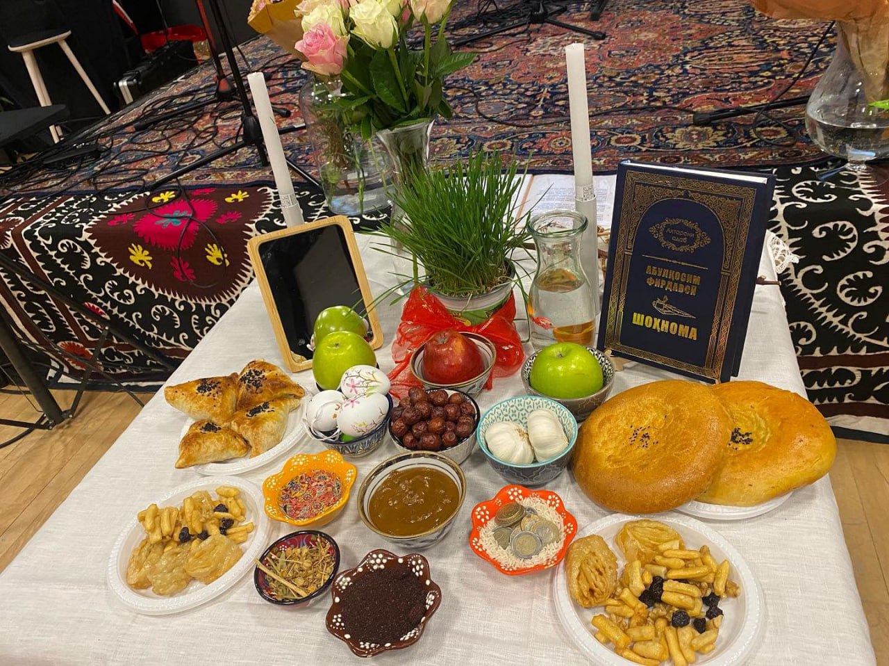 Как сообщили «Азия-Плюс» организаторы, для гостей были накрыты традиционные столы, а культурную часть своим творчеством украсили известный таджикский дойрист Хайрулло Дадобоев, кайнарчи Нозим Абдримов, афганский певец Фарух Шефаъ.
