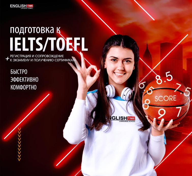 В программе подготовки «English Time» предусмотрены курсы для студентов, стремящихся достичь высоких результатов на экзаменах IELTS, TOEFL. Рекомендуется начать обучение с общего английского, чтобы улучшить базовые языковые навыки, после чего приступить к специализированным курсам.