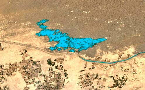 В декабре прошлого года эксперты коалиции обнаружили на спутниковых снимках свидетельства огромного разлива воды протяженностью девять километров на 75-м километре канала Кош-Тепа. Этот разлив по-прежнему виден на снимках из космоса.