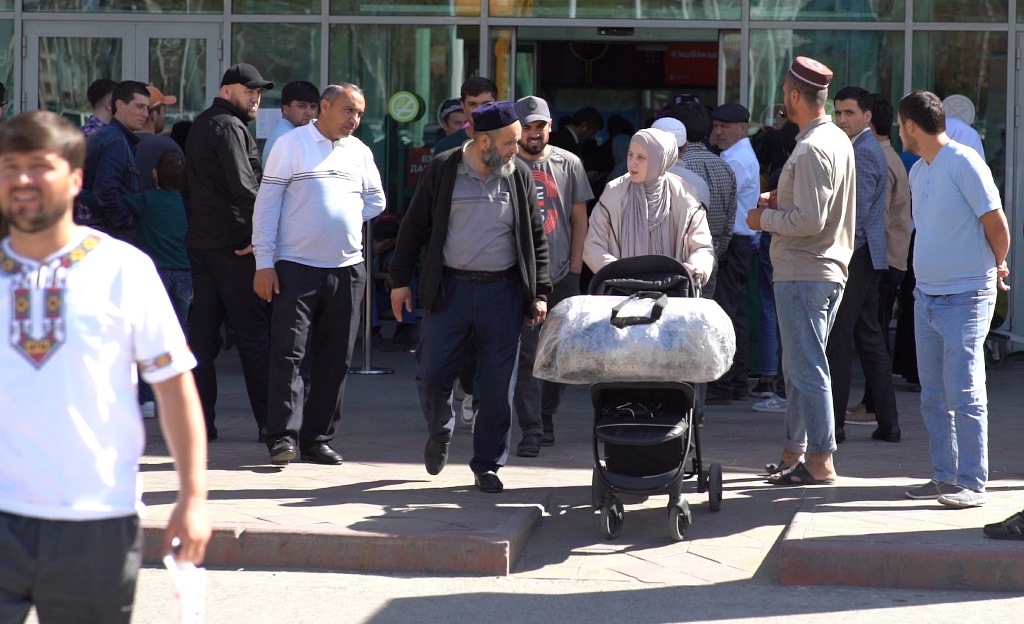 В аэропорту толпа ожидающих своих родственников из Москвы сгрудилась около здания. Многие молчаливы и отказываются говорить с журналистами. Хотя при этом отмечают, что их родные не почувствовали никакого давления, находясь в РФ, по их словам, их близкие продолжают жить и работать как обычно. А сейчас возвращаются лишь на праздник.