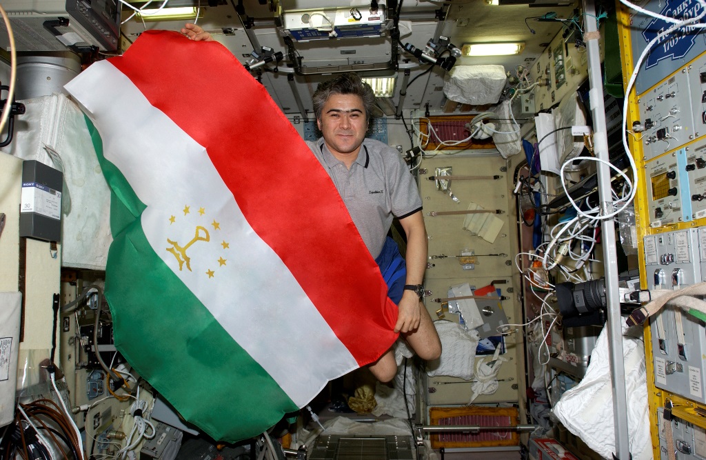 Первый космонавт Центральной Азии Солиджон Шарипов в память о своем дедушке-таджике взял флаг с собой на орбиту, где находился в составе десятой экспедиции.