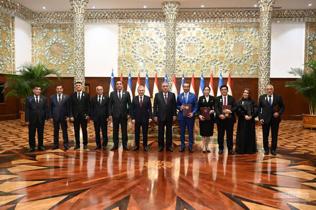 В рамках государственного визита президента Узбекистана в Таджикистан состоялась церемония вручения Государственных наград Таджикистана и Узбекистана группе деятелей культуры и искусств из двух стран, передает пресс-служба президента РТ.