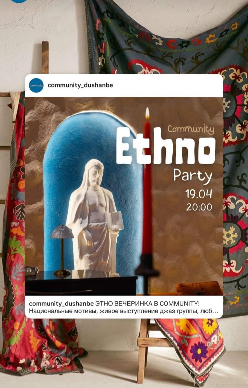 В Community 19 апреля в 20:00 пройдёт «Этно вечеринка», наполненная национальными мотивами. В программе живое выступление от джаз-бэнда и известные хиты от Dj Jova.