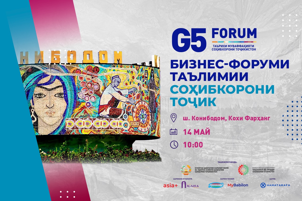 «Business Forum G5» в этом году пройдет в 8 раз и площадкой для сбора самых успешных предпринимателей станет город Канибадам. 14 мая в «Қасри Фарханг» (Дворец культуры) будет возможность получить ценные знания для построения успешной стратегии по развитию вашего бизнеса.