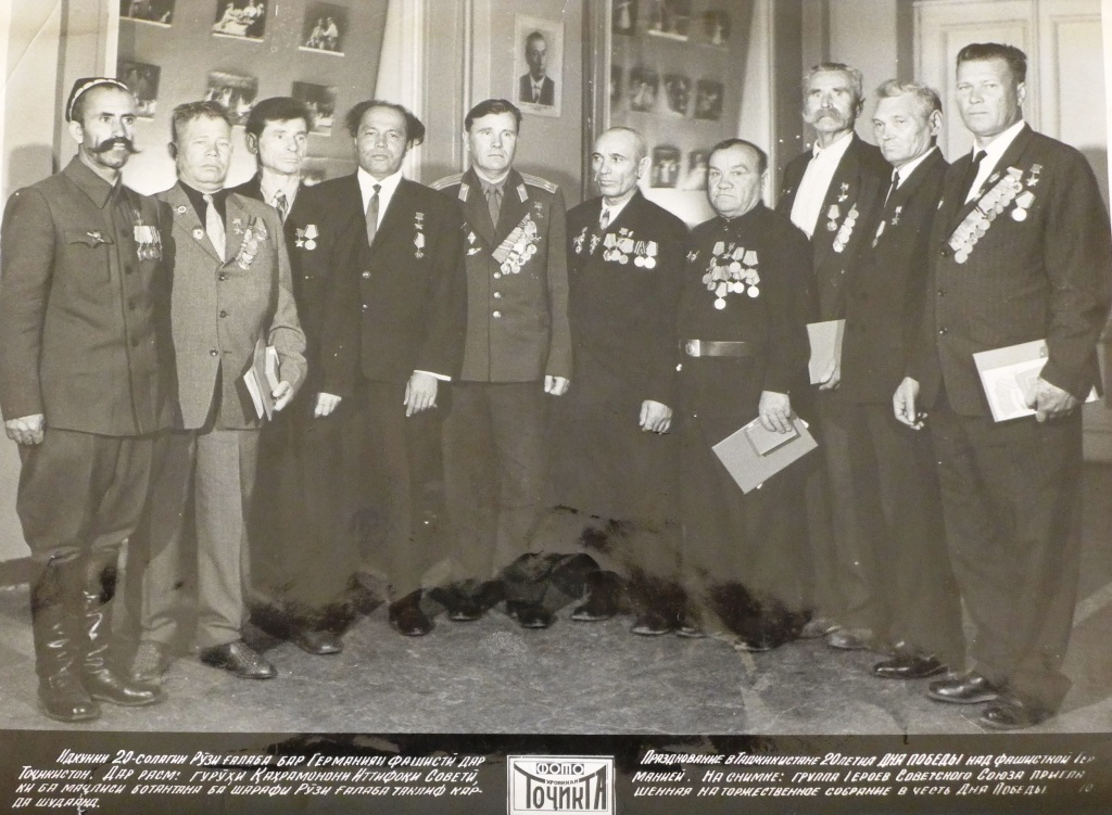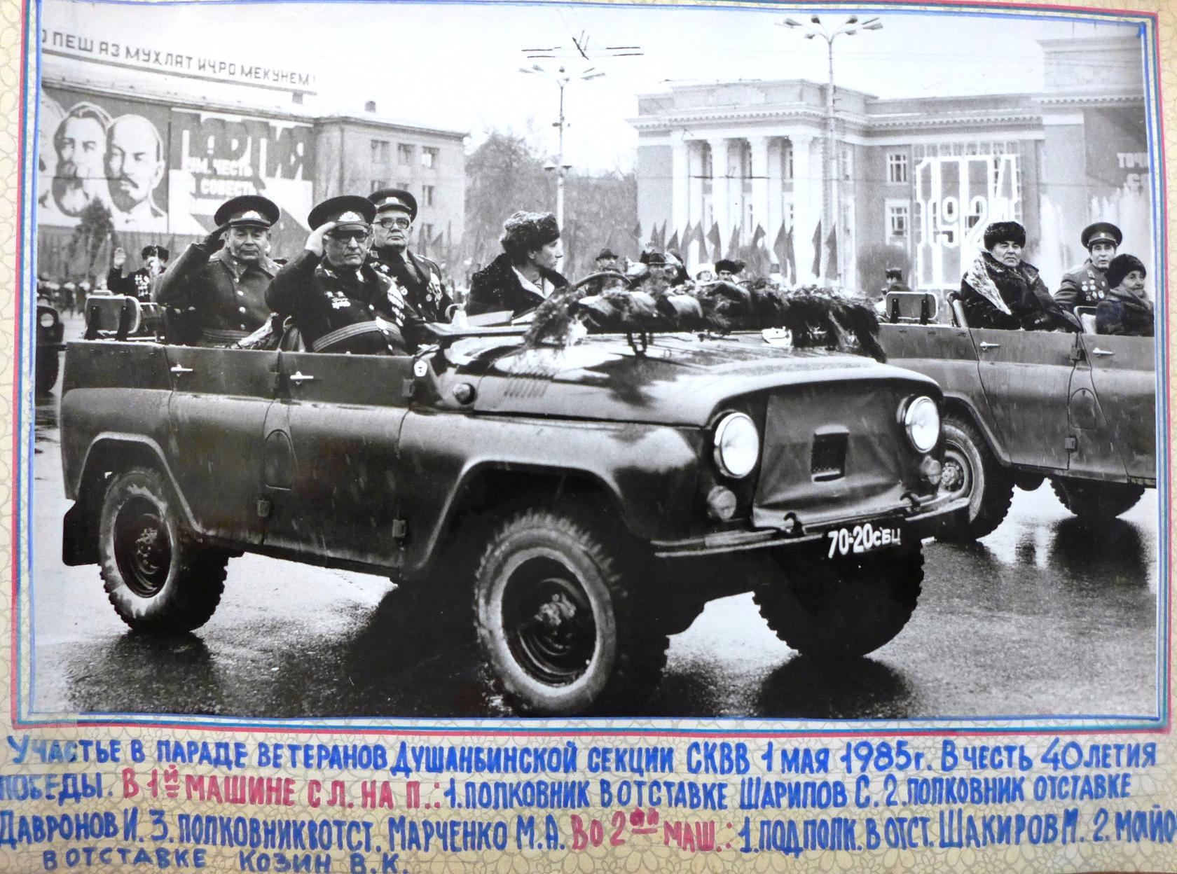 С 1965 года указом Президиума Верховного Совета СССР 9 мая стал нерабочим днем. В Душанбе в тот год День Победы впервые отметили широко и торжественно — с военным парадом и шествием ветеранов на площади им. Ленина.