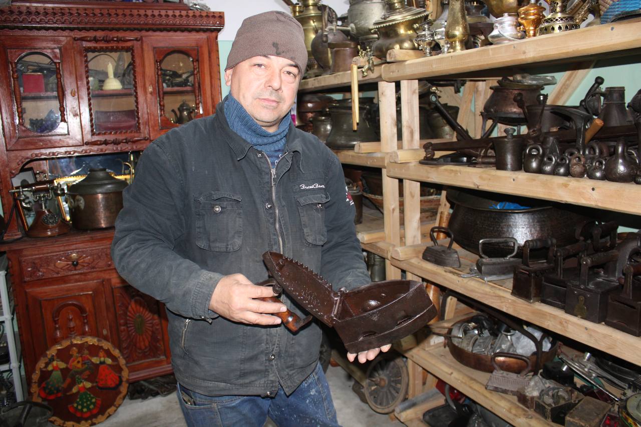 «Я тогда вместе с другими мастерами строил и оформлял мечеть, кузнечную мастерскую и дом с шестью комнатами. Некоторые экземпляры из своей коллекции я подарил Саразму», — рассказывает мастер.