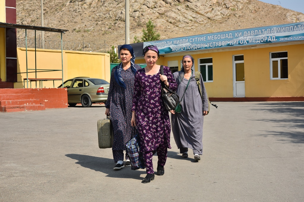 За ворота тюрьмы выходят со своим нехитрым скарбом, уставшие уже от жизни женщины, возраст которых сложно определить (актрисы Мавлона Наджмуддинова, Зулфия Кадырова (Садыкова), Надежда Мамаджанова).