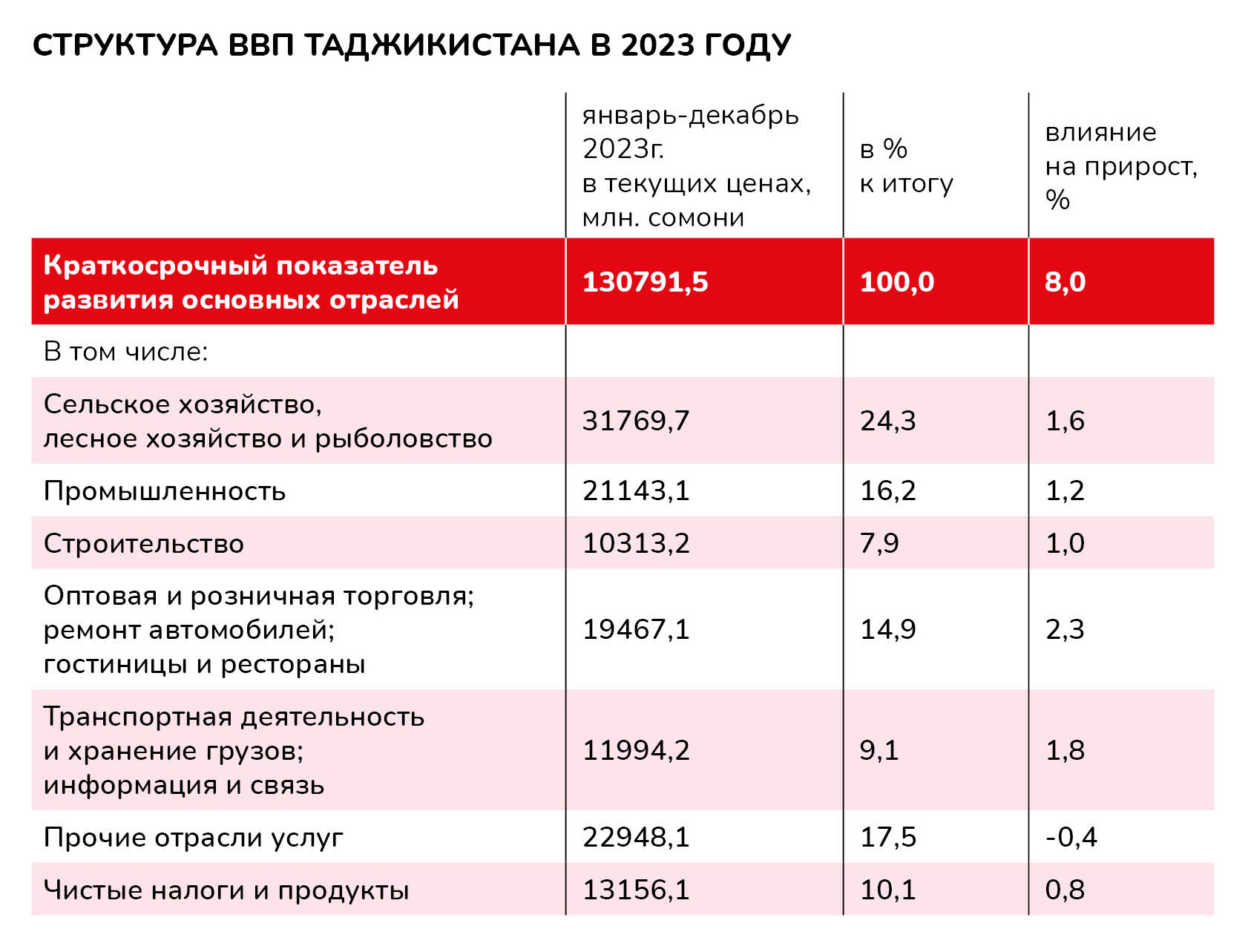 «За последние годы наблюдается тенденция роста доли промышленности в структуре ВВП республики», — сказал он летом минувшего года «Азия-Плюс».